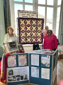We set up a welcoming display showcasing our community projects — including our Ladies’ Sewing Group, Community Garden, and support services for refugees and asylum seekers. Our beautiful quilt, handmade by members of the sewing group, was the centrepiece of the stall and drew lots of interest and compliments!