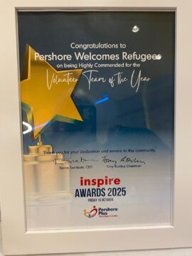 A great result yesterday for our friends and colleagues in the Pershore Welcomes Refugees sub group. They have only been up and running for just over a year, but have done some really great work welcoming new arrivals into their community and really deserve this award. It’s always nice to see good work recognised but at this current difficult time for the Sanctuary community, this is especially pleasing! Well done to you all!
