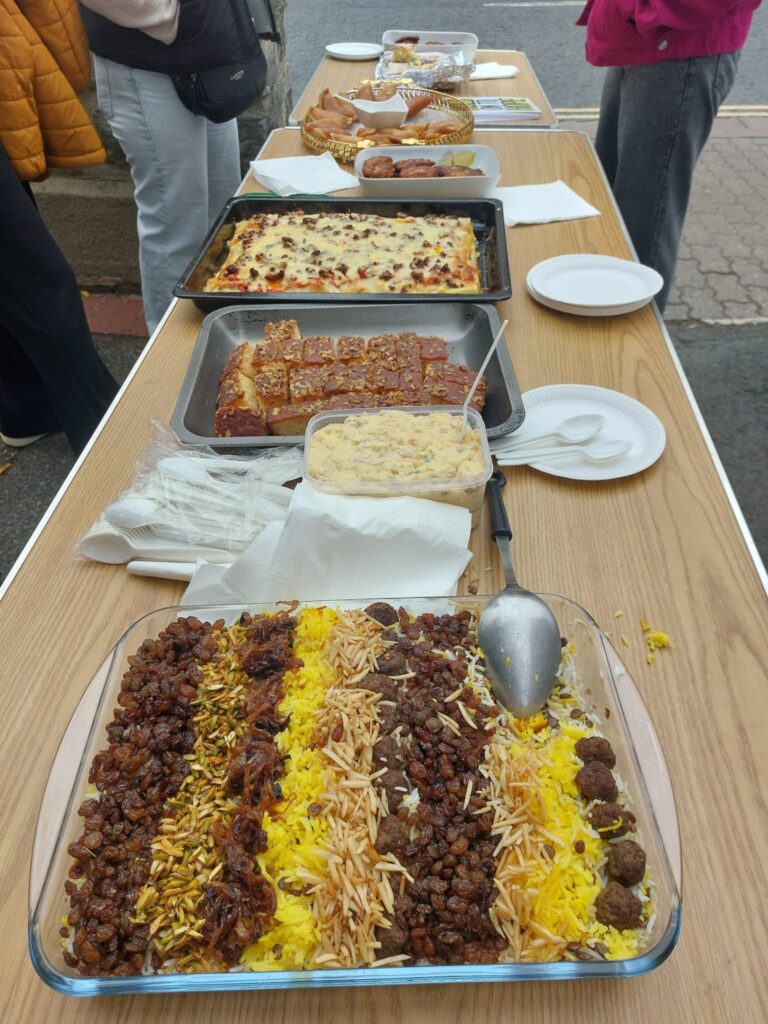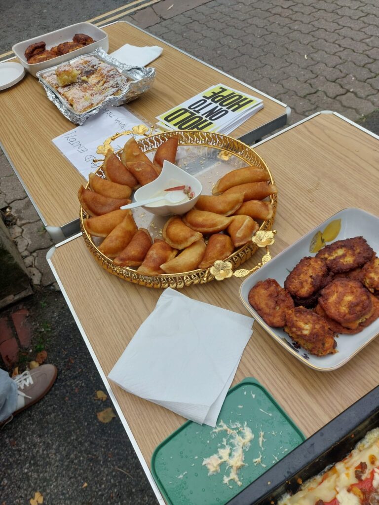 As part of the national Weekend of Hope, a group of Iranian and Syrian refugees and asylum seekers cooked for their neighbours here in Evesham – offering their hospitality free to express gratitude for the warm reception they have had here and the help and support they receive from this community. A delicious way of saying thank you! We were pleased to be able to share this edible bounty with many passers by and to have some very positive conversations to help dispel myths that are elsewhere in the media about people seeking sanctuary amongst us.