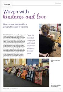 We are incredibly proud to have been featured in The Quilter’s Magazine in an article titled “Woven with Kindness and Love – How a Simple Idea Provides a Powerful Message of Welcome.”